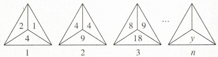 5. 如图,下列各三角形中的三个数之间均具有相同的规律,根据此规律,最后一个三角形中$y$与$n$之间的关系是