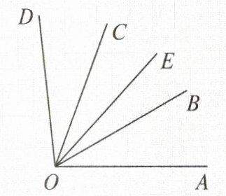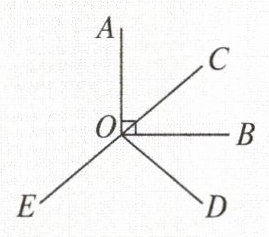 5. 如图,O是直线CE上一点,以O为顶点作∠AOB=90°,且OA,OB位于直线CE两侧,OB平分∠COD。
