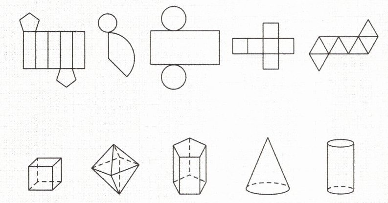 【例题】下列第二行的哪个几何体的表面展开图与第一行的平面图形相同?请对应连线。