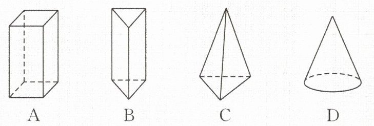 解 ①三棱锥;②四棱锥;③五棱锥;④三棱柱;⑤圆柱;⑥圆锥。
