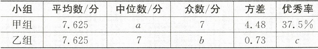 ②甲组成绩的中位数为7.5,高于乙组成绩的中位