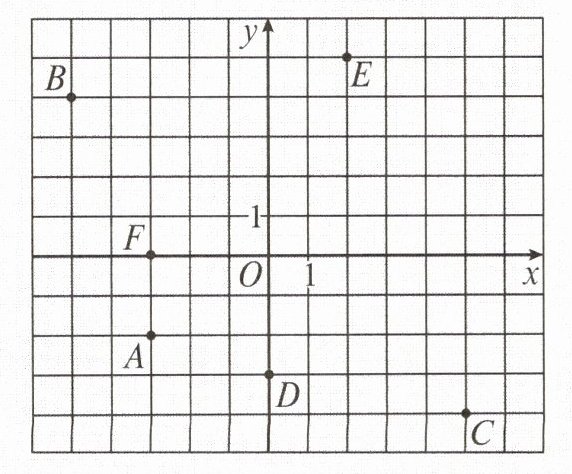 解 A(-3,-2),B(-5,4),C(5,-4),D(0,-3),E(2,5),F(-3,0)。