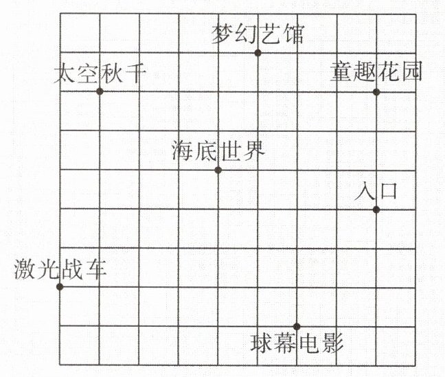 4. 某游乐城的平面示意图如图所示,如果用 $ (8,2) $ 表示入口的位置,用 $ (6,-1) $ 表示球幕电影的位置,那么下列位置用坐标表示正确的是(