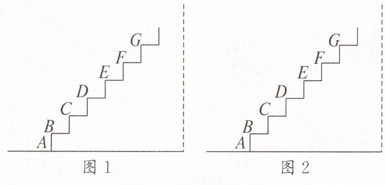 因为每级台阶的宽等于高,点$E$的坐标为$(0,2)$,点$D$的坐标为$(-2,0)$,所以$B(-6,-4),C(-4,-2)$,$G(4,6)$。