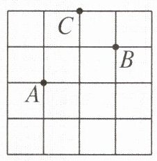 2. 在如图所示的方格纸上建立适当的平面直角坐标系,若点 $ A $ 的坐标为 $ (0,1) $,点 $ B $ 的坐标为 $ (2,2) $,则点 $ C $ 的坐标为