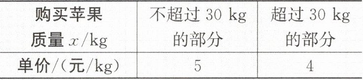 (1)当购买苹果的质量超过$30\ {kg}$时,求$y$与$x$之间的关系式;