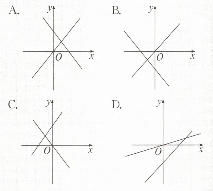 【例1】函数 $ y = bx $ 与 $ y = ax + b $($ a \neq 0 $, $ b \neq 0 $)在同一坐标系中的图象可能是( )。