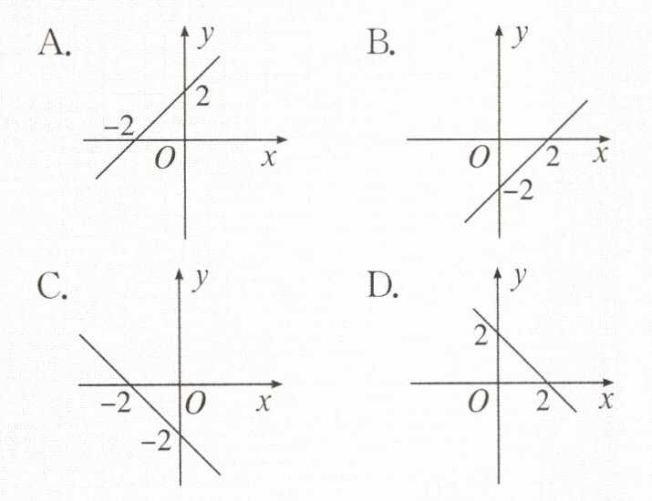 D 解析根据k=-1,b=2可知,一次函数y=-x+2的图象经过第一、二、四象限。故选D。