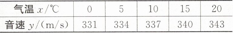 【例2】声音在空气中传播的速度$y$(单位:$m/s$)(简称音速)与气温$x$(单位:$° C$)之间是一次函数关系,下表列出了一组不同气温时的音速: