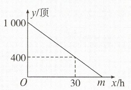 (2)当 y=0 时,0=-20x+1000,解得 x=50,即m=50。