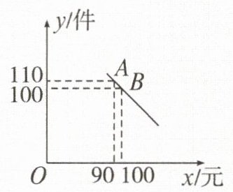 分别代入$y = kx + b$,得$\begin{cases}90k + b = 110,\\100k + b = 100.\end{cases}$解得$\begin{cases}k = -1,\\b = 200.\end{cases}$