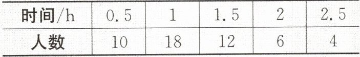 5. 4月23日是世界读书日,某学校为了解学生的阅读时间,随机调查了七年级50名学生每天的平均阅读时间,统计结果如下表所示。在本次调查中,学生每天的平均阅读时间的众数是