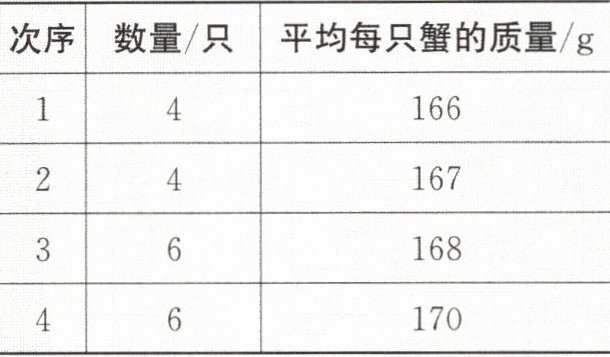 (1)四次试捕中平均每只蟹的质量为