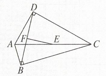 【例2】如图,在四边形 $ABCD$ 中,$\angle ABC = \angle ADC = 90^{\circ}$,$E$,$F$ 分别是 $AC$,$BD$ 的中点.