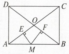 5. 如图,在矩形 $ABCD$ 中,对角线 $AC$,$BD$ 相交于点 $O$,$M$ 是边 $AB$ 上任意一点,$ME \perp AC$ 于点 $E$,$MF \perp BD$ 于点 $F$. $AB = 4$,$BC = 3$,求 $ME + MF$ 的大小.