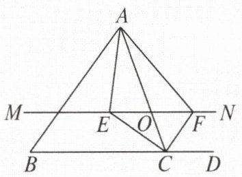 4.如图,在$\triangle ABC$中,点$O$是$AC$上的一个动点,过点$O$作直线$MN// BC$,设$MN$交$\angle BCA$的平分线于点$E$,交$\angle DCA$的平分线于点$F$.