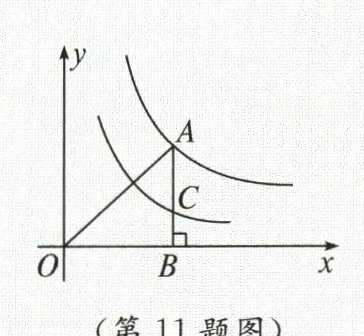 11. 如图,点$A$在函数$y=\frac{6}{x}(x>0)$的图象上,过点$A$作$AB\perp x$轴于点$B$,点$C$在线段$AB$上,且$BC:CA = 1:2$,函数$y=\frac{k}{x}(x>0)$的图象经过点$C$,则$k=$