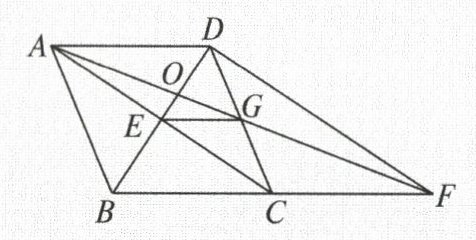 2. 如图,在菱形 $ABCD$ 中,对角线 $AC$,$BD$ 交于点 $E$,延长 $BC$ 到点 $F$,使 $CF = BC$,连接 $AF$,$DF$,$AF$ 分别交 $CD$,$BD$ 于点 $G$,$O$,连接 $EG$,则下列结论错误的是(