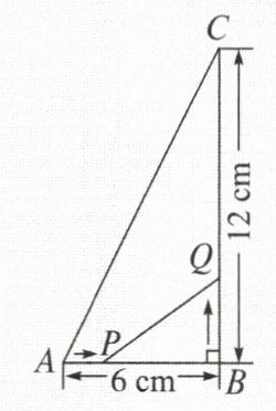 3. 如图,在△ABC中,∠B=90°,点P从点A开始沿AB边向点B以1cm/s的速度移动,点Q从点B开始,沿BC边向点C以2cm/s的速度移动。如果P,Q分别从A,B同时出发,那么几秒后△PBQ的面积等于8cm²?