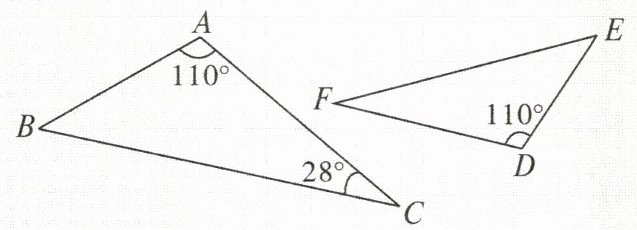 2. 如图,若△ABC∽△DEF,则∠E的度数为