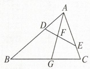 4. 如图,在△ABC中,点D,E分别在边AB,AC上,∠AED=∠B. AG分别交线段DE,BC于点F,G,且$\frac{AD}{AC}=\frac{DF}{CG}$.