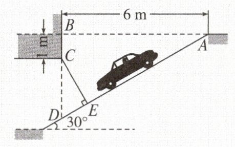 3. 某单位为了缓解“停车难”的问题,拟建造地下停车库,建筑设计师提供了该地下停车库的设计示意图,按规定,地下停车库坡道口上方要张贴限高标志,以便告知停车人车辆能否安全驶入,为标明限高,请你根据该图计算 $ CE $。(精确到 $ 0.1m $)