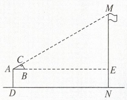 2. 如图,数学兴趣小组利用自制的硬纸三角板 $ Rt\triangle ABC $ 来测量操场旗杆 $ MN $ 的高度,他们通过调整测量位置,并使边 $ AC $ 与旗杆顶点 $ M $ 在同一直线上,且 $ Rt\triangle ABC $ 与 $ \triangle AEM $ 在同一个平面内。已知 $ AC = 0.8 $ 米,$ BC = 0.5 $ 米,目测点 $ A $ 到地面的距离 $ AD = 1.5 $ 米,到旗杆的水平距离 $ AE = 20 $ 米,则旗杆 $ MN $ 的高度为