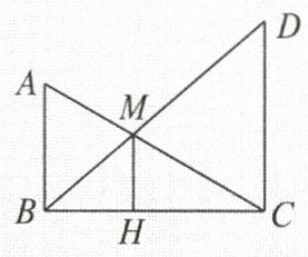 1. 如图,$ AB $ 和 $ CD $ 表示两根直立于地面的柱子,$ AC $ 和 $ BD $ 表示起固定作用的两根钢筋,$ AC $ 与 $ BD $ 相交于点 $ M $,已知 $ AB = 8m $,$ CD = 12m $,则点 $ M $ 离地面的高度 $ MH $ 为(