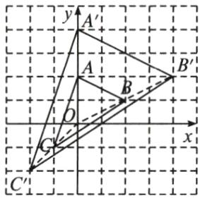 【例题】如图,在平面直角坐标系中,将$\triangle ABC$以原点$O$为位似中心放大到2倍,画出放大后的$\triangle A'B'C'$.