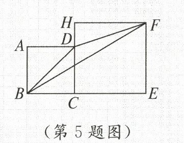 5. 如图,正方形ABCD的边长为2,H在CD的延长线上,四边形CEFH也为正方形,则△DBF的面积为(