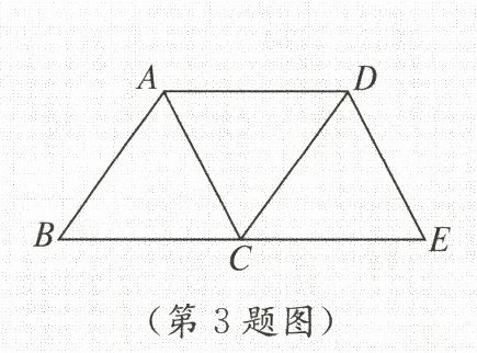 3. 如图,将△ABC沿BC方向平移得到△DCE,连接AD,下列条件中能够使得四边形ACED为菱形的是(
