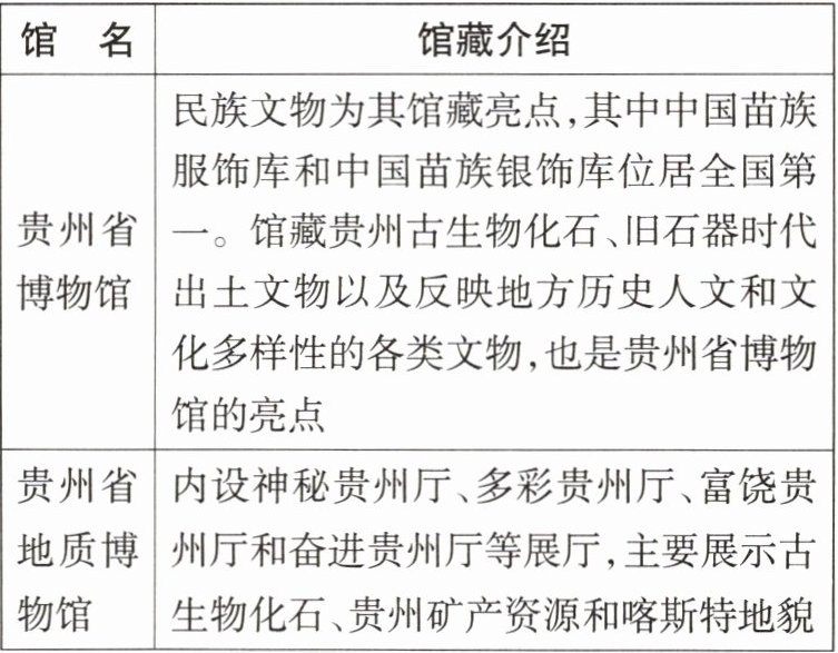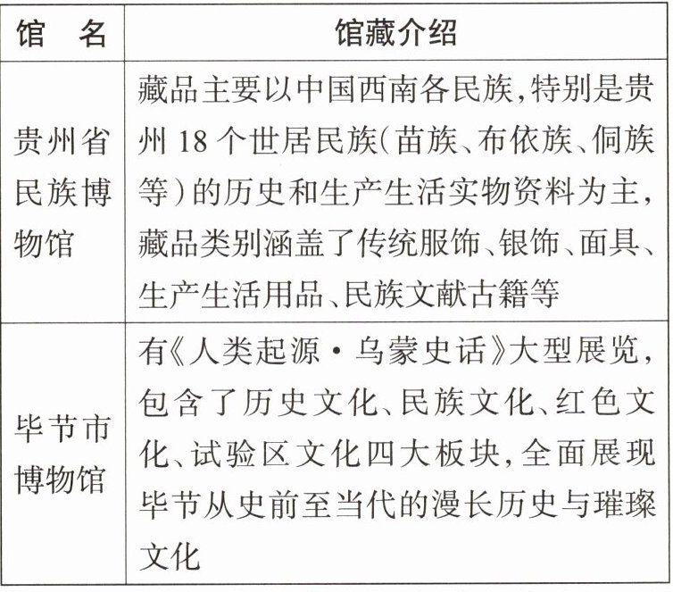 7. 班长准备以“走进贵州博物馆”为主题进行发言。请整合下表信息,将发言稿补充完整。