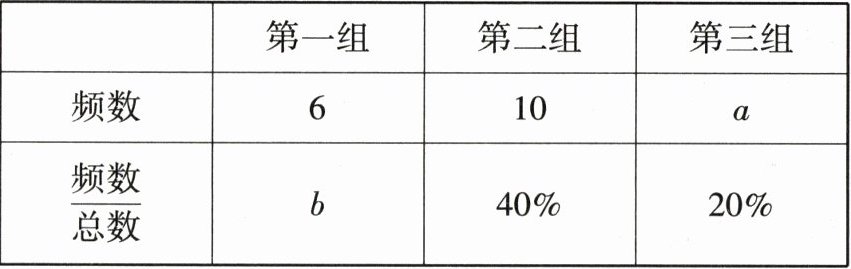 6. 某班女生的体育测试被分成了三组,统计情况如下表所示,则表中 a 的值是