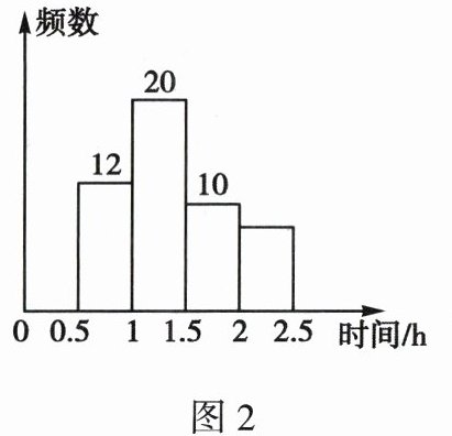 7. 某校为了解七年级学生周末写作业所需平均时间,随机抽取了 50 名七年级学生进行调查,并绘制了如图 2 所示的频数分布直方图. 根据图中信息,周末用于写作业时间在 2~2.5 h 的频数是(