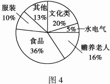 11. 图 4 是奇思家 6 月份生活费用支出情况统计图. 已知奇思家这个月服装支出 500 元,赡养老人支出