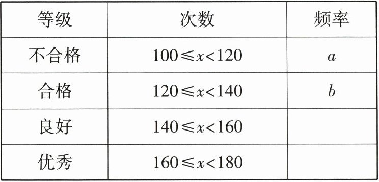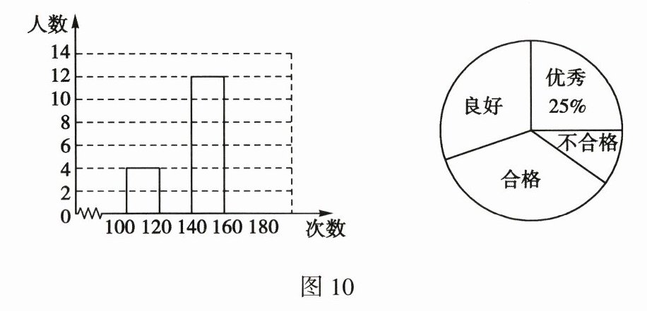 19. (12 分)促进青少年健康成长是实施“健康中国”战略的重要内容. 为了引导学生积极参与体育运动,某校举办了 1 min 跳绳比赛,随机抽取了 40 名学生 1 min 跳绳的次数进行调查统计,并根据调查统计结果绘制了如下表格和统计图(图 10).