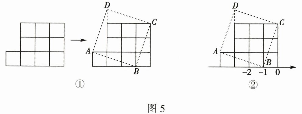 (1)在图 5①中,拼成的大正方形 ABCD 的面积为