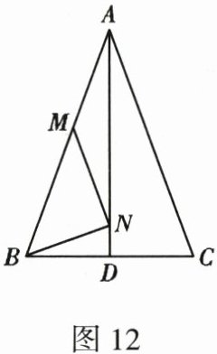 6. 如图12,在△ABC中,∠ABC = 70°,AB = AC = 8,D为BC的中点,点N在线段AD上,NM//AC交AB于点M,BN = 3。