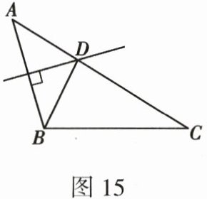4. (2024·镇江)如图15,△ABC的边AB的垂直平分线交AC于点D,连接BD。若AC = 8,CD = 5,则BD = 。