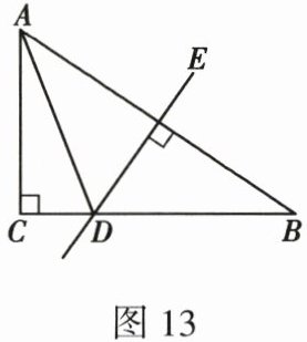 1. (2024·凉山)如图13,在Rt△ABC中,∠ACB = 90°,DE垂直平分AB交BC于点D。若△ACD的周长为50 cm,则AC + BC的值为()