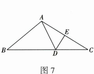 11. 如图7,在△ABC中,∠C = 32°,∠B = 40°,AC的垂直平分线分别交BC、AC于点D、E,则∠BAD =