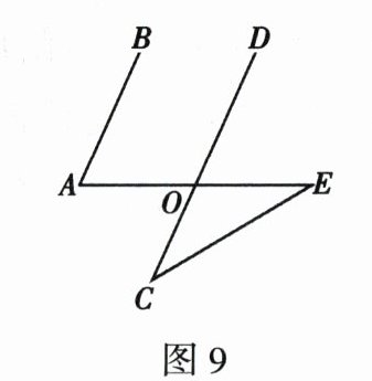 11. (2024·绥化)如图 9,$AB // CD$,$\angle C = 33^{\circ}$,$OC = OE$,则 $\angle A$ 的度数为