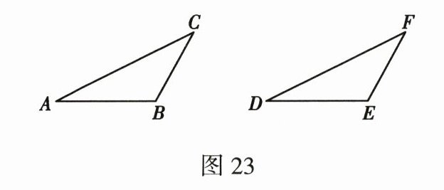 任务四:如图 23,在 $\triangle ABC$ 和 $\triangle DEF$ 中,$AC = DF$,$BC = EF$,$\angle B = \angle E$,且 $\angle B$、$\angle E$ 都是钝角,求证:$\triangle ABC \cong \triangle DEF$.
