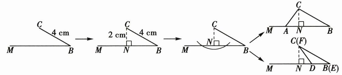 任务一:我们不妨将问题用符号语言表示为“在 $\triangle ABC$ 和 $\triangle DEF$ 中,$AC = DF$,$BC = EF$,$\angle B = \angle E$”,然后,对 $\angle B$ 进行分类,可分为 $\angle B$ 是