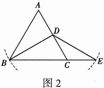 5. 如图 2,$BD$ 是等边 $\triangle ABC$ 的边 $AC$ 上的中线,以点 $D$ 为圆心、$DB$ 长为半径画弧交 $BC$ 的延长线于点 $E$,则 $\angle BDE$ 等于(