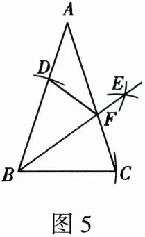 9. 如图 5,在 $\triangle ABC$ 中,$AB = AC$,$\angle BAC = 36^{\circ}$,以点 $B$ 为圆心,以 $BC$ 为半径作弧交 $AB$ 于点 $D$,再分别以 $C$、$D$ 为圆心,以大于 $\frac{1}{2}CD$ 的长为半径作弧,两弧相交于点 $E$,作射线 $BE$ 交 $AC$ 于点 $F$,连接 $DF$。下列结论不正确的是(