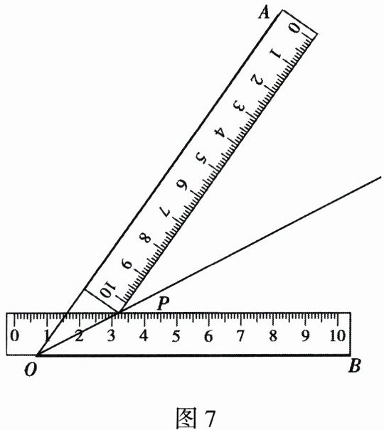13. 小明同学在学习了全等三角形的相关知识后发现,只用两把完全相同的长方形直尺就可以作出一个角的平分线。如图 7,一把直尺压住射线 $OB$,另一把直尺压住射线 $OA$ 并且与第一把直尺交于点 $P$,小明说:“射线 $OP$ 就是 $\angle BOA$ 的平分线。”小明的做法,其理论依据是