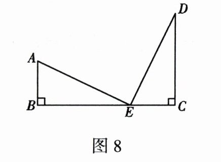14. 如图 8,$Rt\triangle ABE \cong Rt\triangle ECD$,点 $B$、$E$、$C$ 在同一直线上,则下列结论:① $AE = ED$;② $AE \perp DE$;③ $BC = AB + CD$;④ $AB // DC$。其中成立的是
