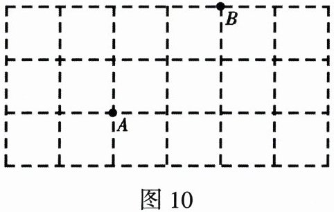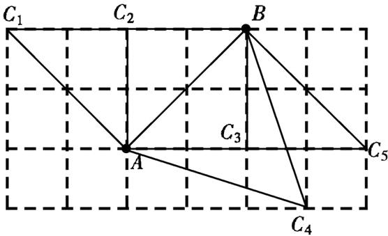 16. (8 分)如图 10 所示的正方形网格中,网格线的交点称为格点。已知 $A$、$B$ 是两个格点,如果点 $C$ 也是图形中的格点,且 $\triangle ABC$ 为等腰三角形,请你在如下 $6×3$ 的网格中找到所有符合条件的点 $C$(可以用 $C_{1}$,$C_{2}$,…表示),并画出所有三角形。