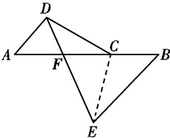 21. (10 分)如图 14,已知 $C$ 是 $AB$ 上一点,点 $D$、$E$ 分别在 $AB$ 两侧,$AD // BE$,且 $AD = BC$,$BE = AC$。连接 $DE$,交 $AB$ 于点 $F$,猜想 $\triangle BEF$ 的形状,并给予证明。